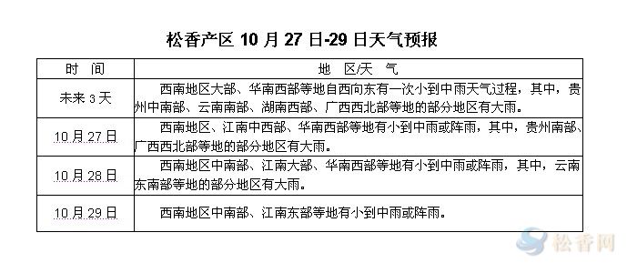 华讯松香网提醒:未来三天松香主产区均有降雨,其中正值产季的云南产区降雨最为严重,其他产区受降雨影响也将会出现大幅度降温。低温降雨必将影响松脂产量,对市场的影响有待观察。